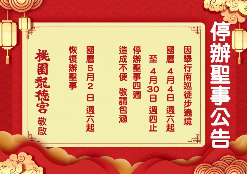 農曆三月十五日是桃園龍德宮 玄壇真君武財神聖誕千秋日,於國曆4月30日晚上11:15依循儀禮虔誠祝壽 […]