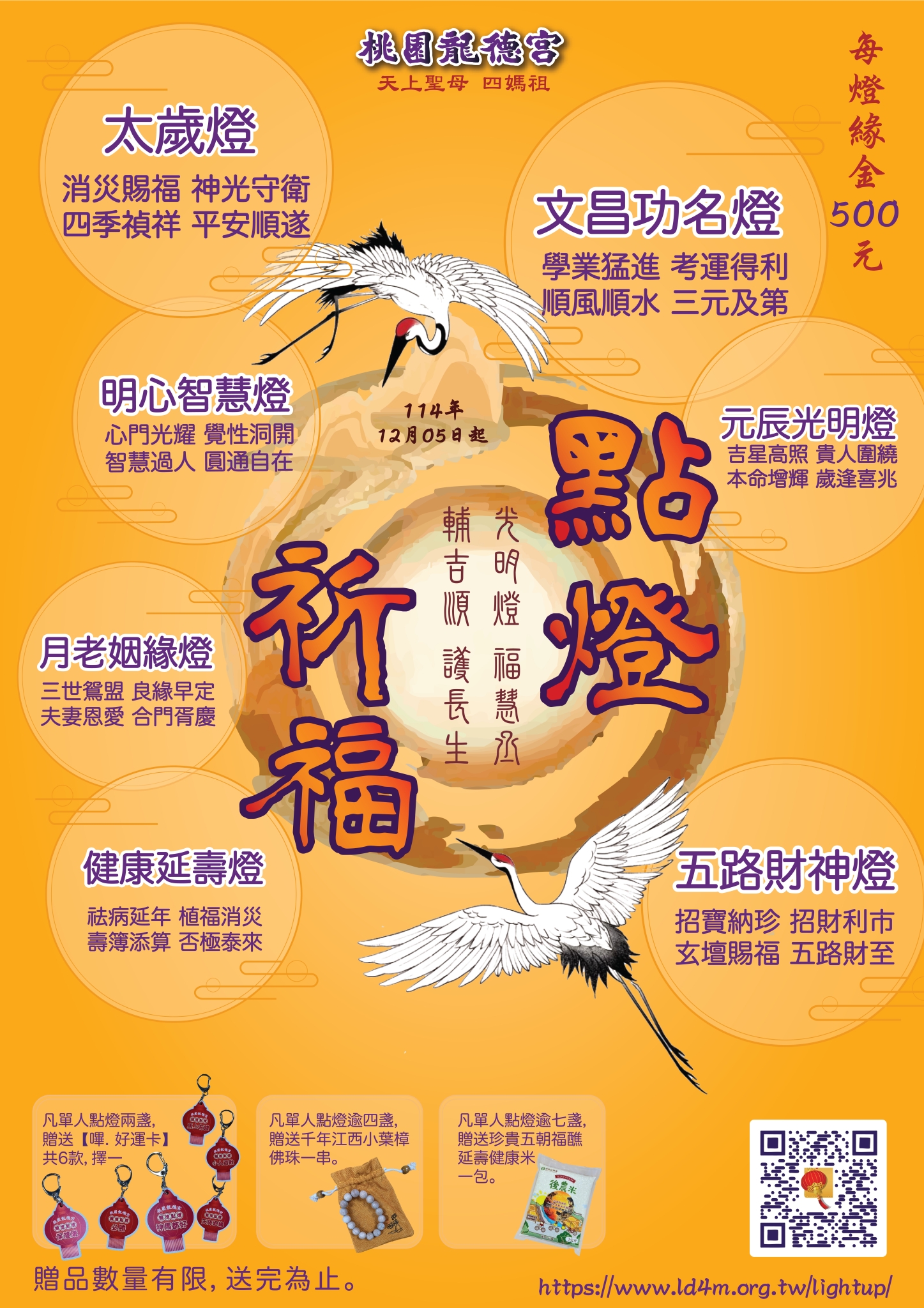 桃園龍德宮點燈服務種類多元,